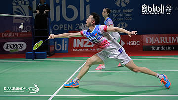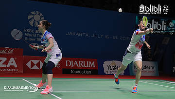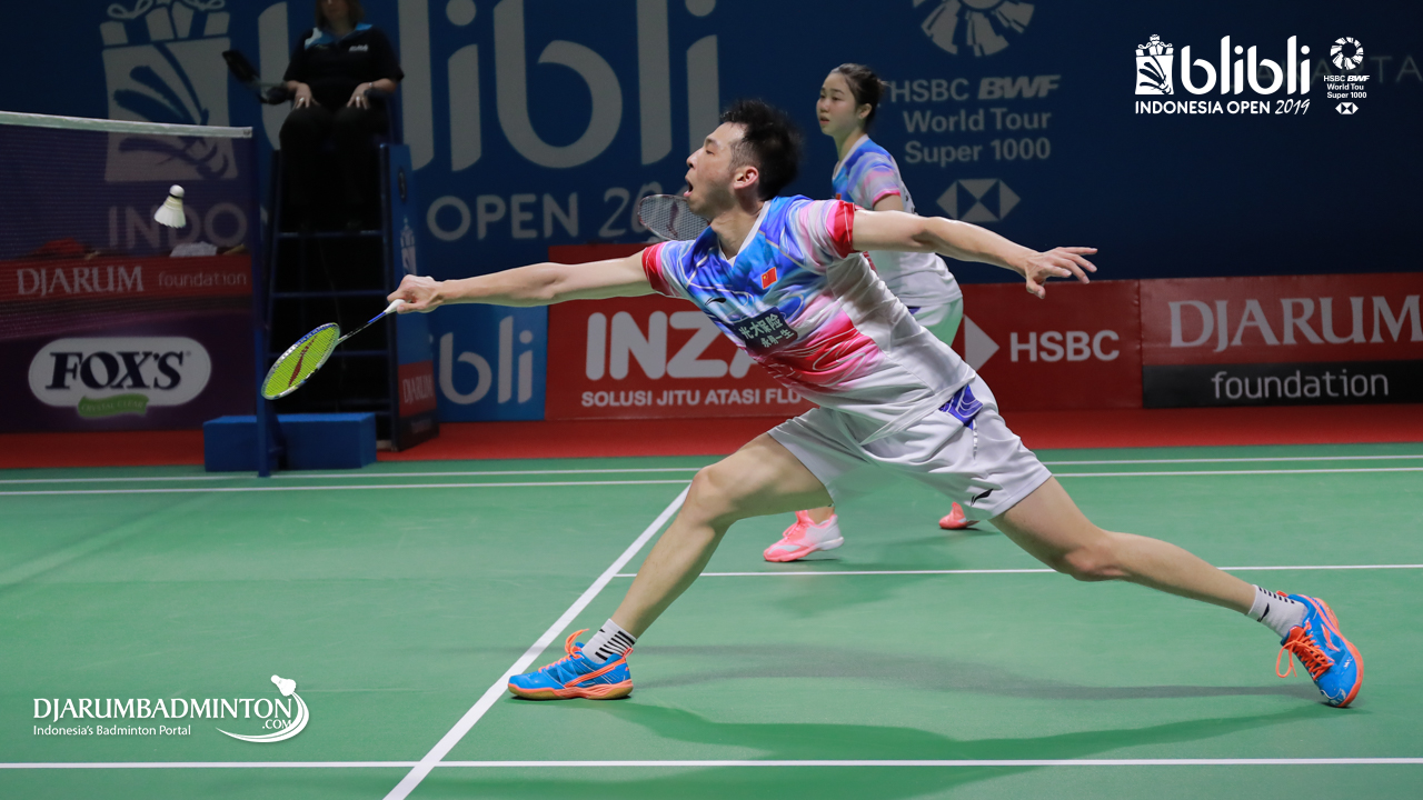 LU Kai/CHEN Lu (China) mengembalikan shuttlecock