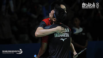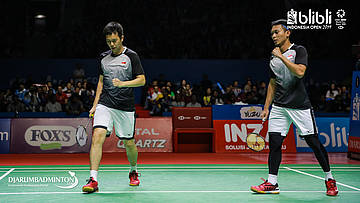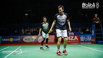 Mohammad AHSAN/Hendra SETIAWAN (Indonesia) di Pertandingan Semifinals BIO 2019