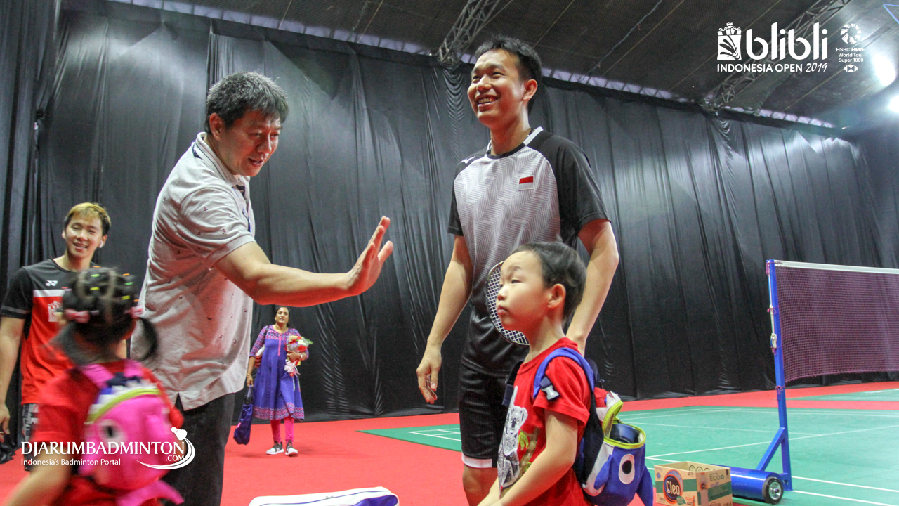 Hendra Setiawan bersama anak-anaknya di Warming Up Hall