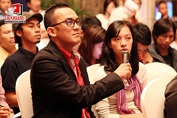 Ketua Pelaksana Djarum Indonesia Open 2012, Yakob Rusdianto diwawancarai oleh wartawan di konfrensi pers Djarum Indonesia Open 2012 di Bali Room di Hotel Kempinski, Jakarta.