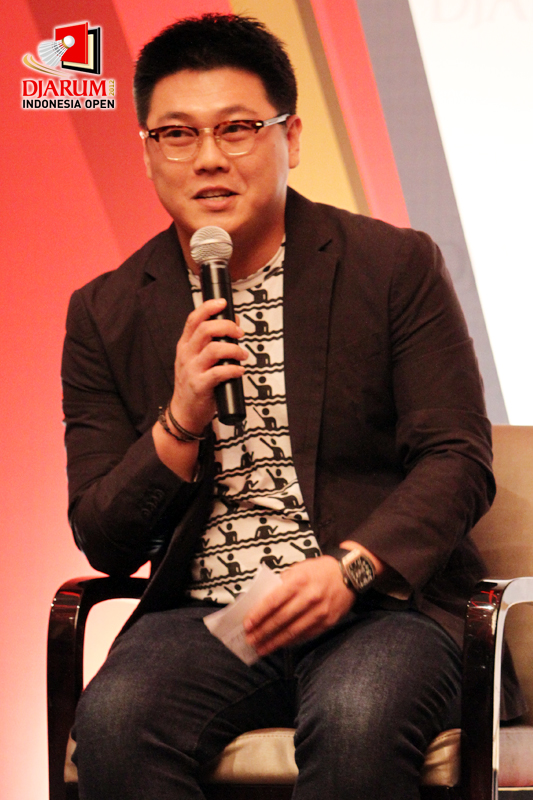 Ketua Pelaksana Djarum Indonesia Open 2012, Yakob Rusdianto tengah menjawab pertanyaan dari para wartawan saat konfrensi pers Djarum Indonesia Open 2012 di Bali Room di Hotel Kempinski, Jakarta.