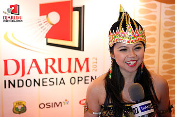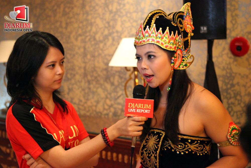 Greysia Polii ketika diinterview saat menghadiri Welcome Dinner Djarum Indonesia Open 2012 di Hotel Sultan, Jakarta.