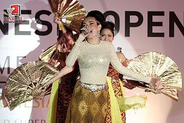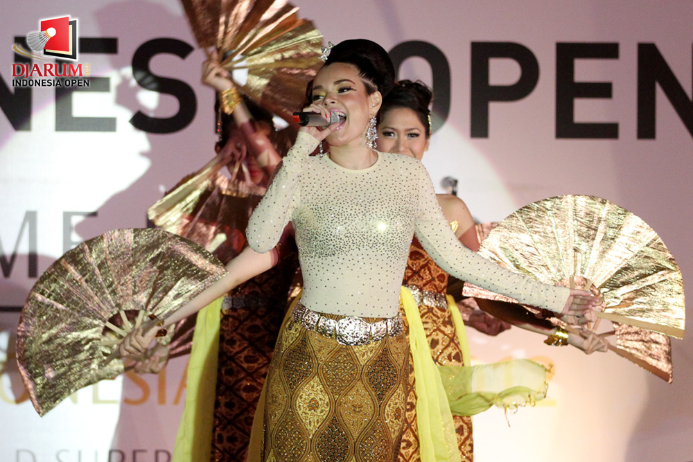 Dewi Sandra menjadi bintang tamu dalam Welcome Dinner Djarum Indonesia Open 2012 di Hotel Sultan, Jakarta.