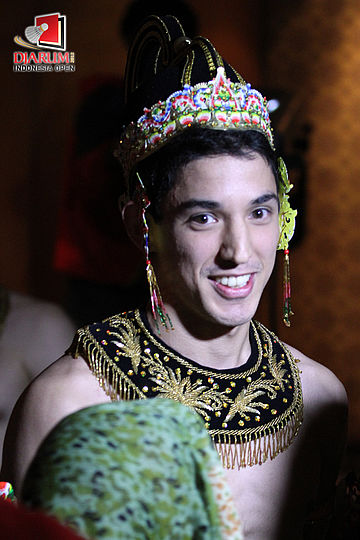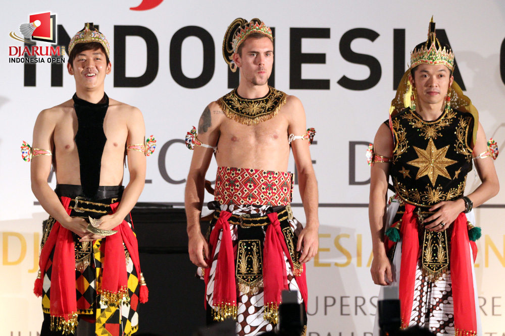 Pemain Belgia, Yohan berpakaian seperti tokoh wayang dalam Welcome Dinner Djarum Indonesia Open 2012 di Hotel Sultan, Jakarta.