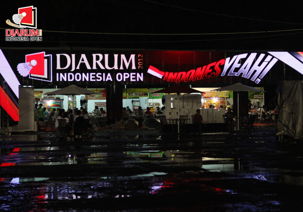 Pengunjung disuguhkan aksi band memeriahkan perhelatan Djarum Indonesia Open 2012.