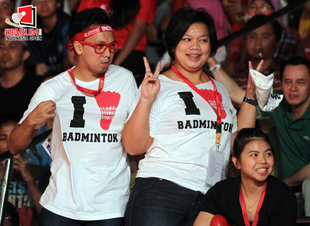 Personel Project P, Udjo (kiri) dan Tike Pangabean (tengah) berpose bersama pemain Indonesia, Greysia Polii.