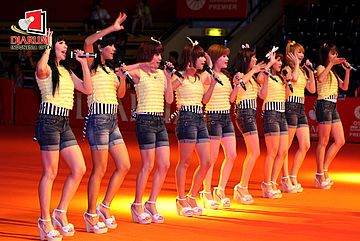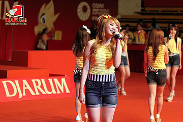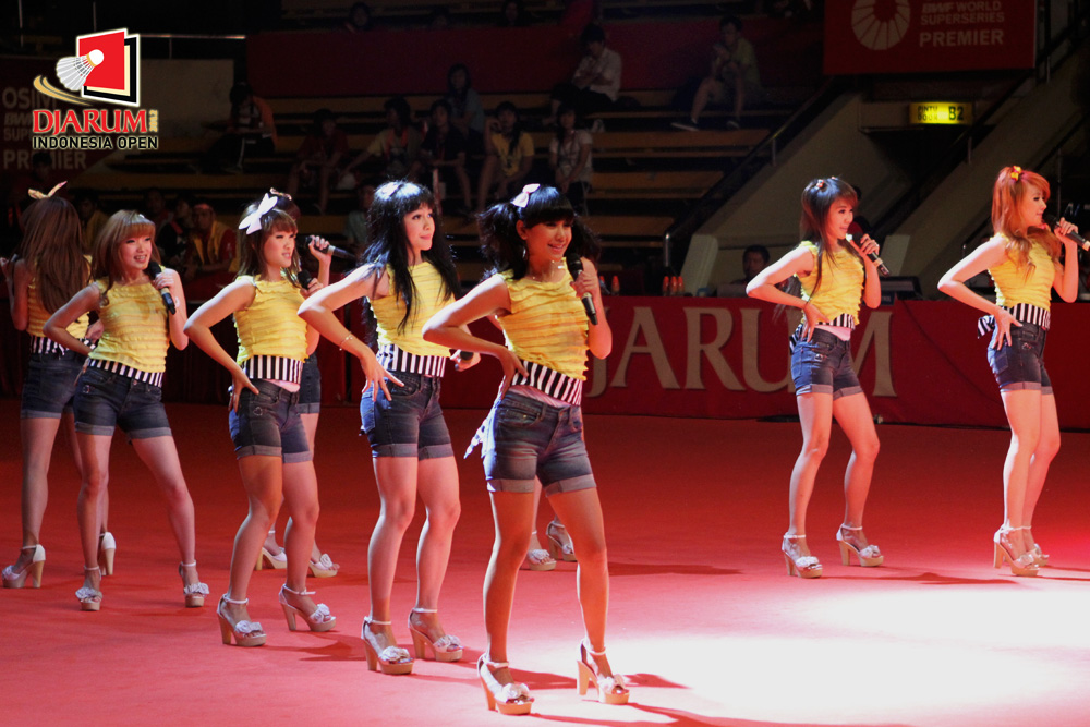 Cherry Belle menghibur penonton yang menyaksikan babak semifinal Djarum Indonesia Open 2012.