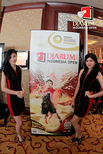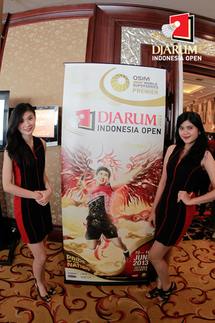 Banner Djarum Indonesia Open Super Series Premier 2013 menghiasi tempat berlangsungnya press conference.