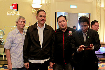 (ki-ka) Christian Hadinata, Gita Wirjawan, Roland Halim, Basri Yusuf berphoto bersama saat press conference akan dimulai