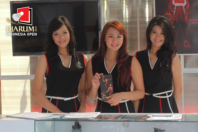 Tiga usher saat berpose di depan booth PB Djarum.