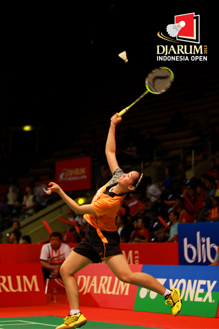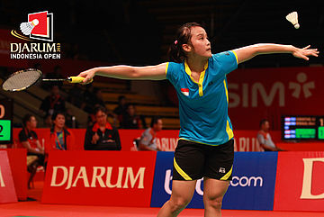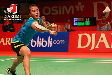 Febby Angguni (Indonesia) mengembalikan shuttlecock ke arah Anna Astrakhantseva (Rusia).