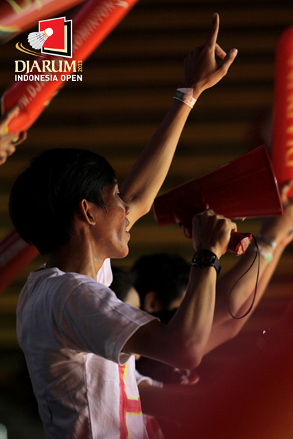 Salah satu suporter meneriakan dukungannya untuk para pemain Indonesia yang tengah bertanding.
