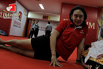 Keshya Nurvita Hanadia (Indonesia) saat melakukan pendinginan usai bertanding.