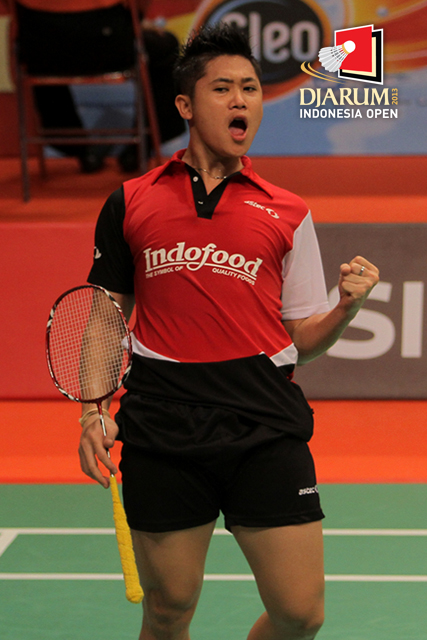 Ekspresi Wahyu Nayaka (Indonesia) saat memenangkan pertandingan.