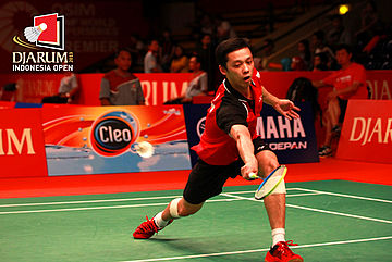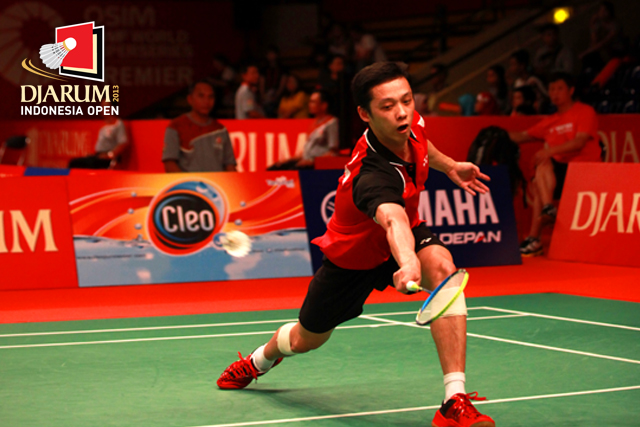 Sony Dwi Kuncoro (Indonesia) melepaskan smash.