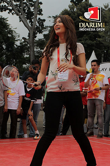 Maria Selena saat melakukan registrasi di booth blibli.com.