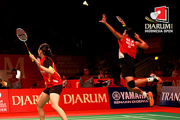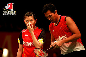 Tantowi Ahmad/Liliyana Natsir (Indonesia) sebelum memasuki lapangan pertandingan.
