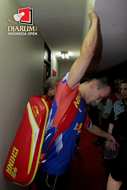 Du Peng Yu (China) saat berdo'a sebelum memasuki lapangan pertandingan.