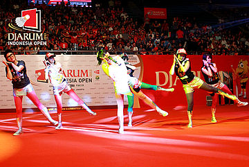 Super Gerlies saat tampil menghibur pengunjung yang memadati Istora Senyan.