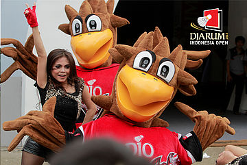 Penampilan salah satu modern dance bersama maskot DIO cukup menarik perhatian sejumlah pengunjung yang hadir di Istora Senayan.