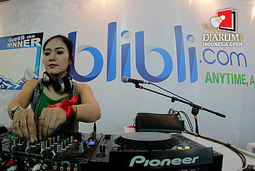 Salah satu Female DJ saat memainkan turntable di booth blibli.com.