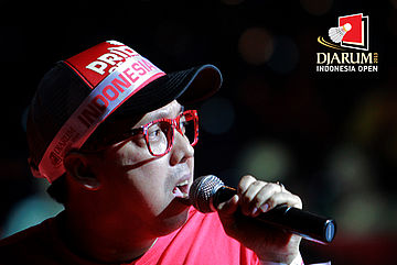 Udjo "Project Pop" saat menghibur ribuan pengunjung yang memadati Istora Senayan.