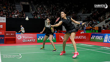 Ashwini PONNAPPA/REDDY N. Sikki (India) menahan serangan