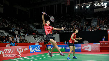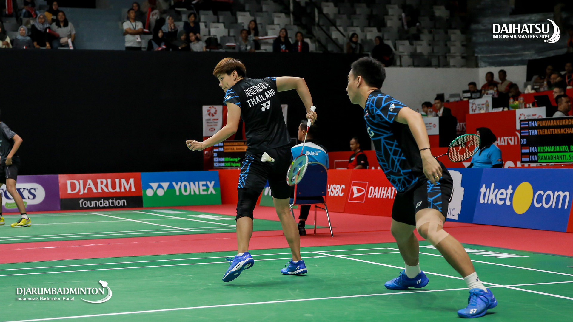 Dechapol PUAVARANUKROH/Sapsiree TAERATTANACHAI (Thailand) berusaha mengembalikan serangan