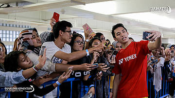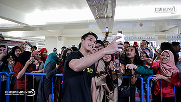 Jonatan CHRISTIE (Indonesia) berfoto bersama badminton lover