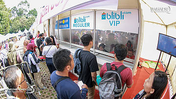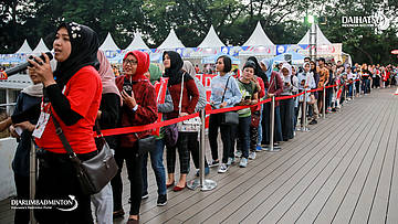 Suasana antrian foto bersama di cara meet and greet Tontowi AHMAD dan Liliyana NATSIR di booth Daihatsu