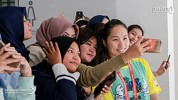 Ratchanok INTANON (Thailand) berfoto bersama badminton lover seusai bertanding