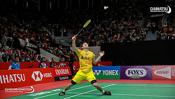 Jonatan CHRISTIE (Indonesia) bersiap melepaskan serangan