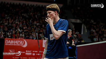 Anders ANTONSEN (Denmark) bersiap melepaskan serangan