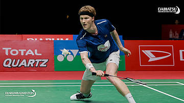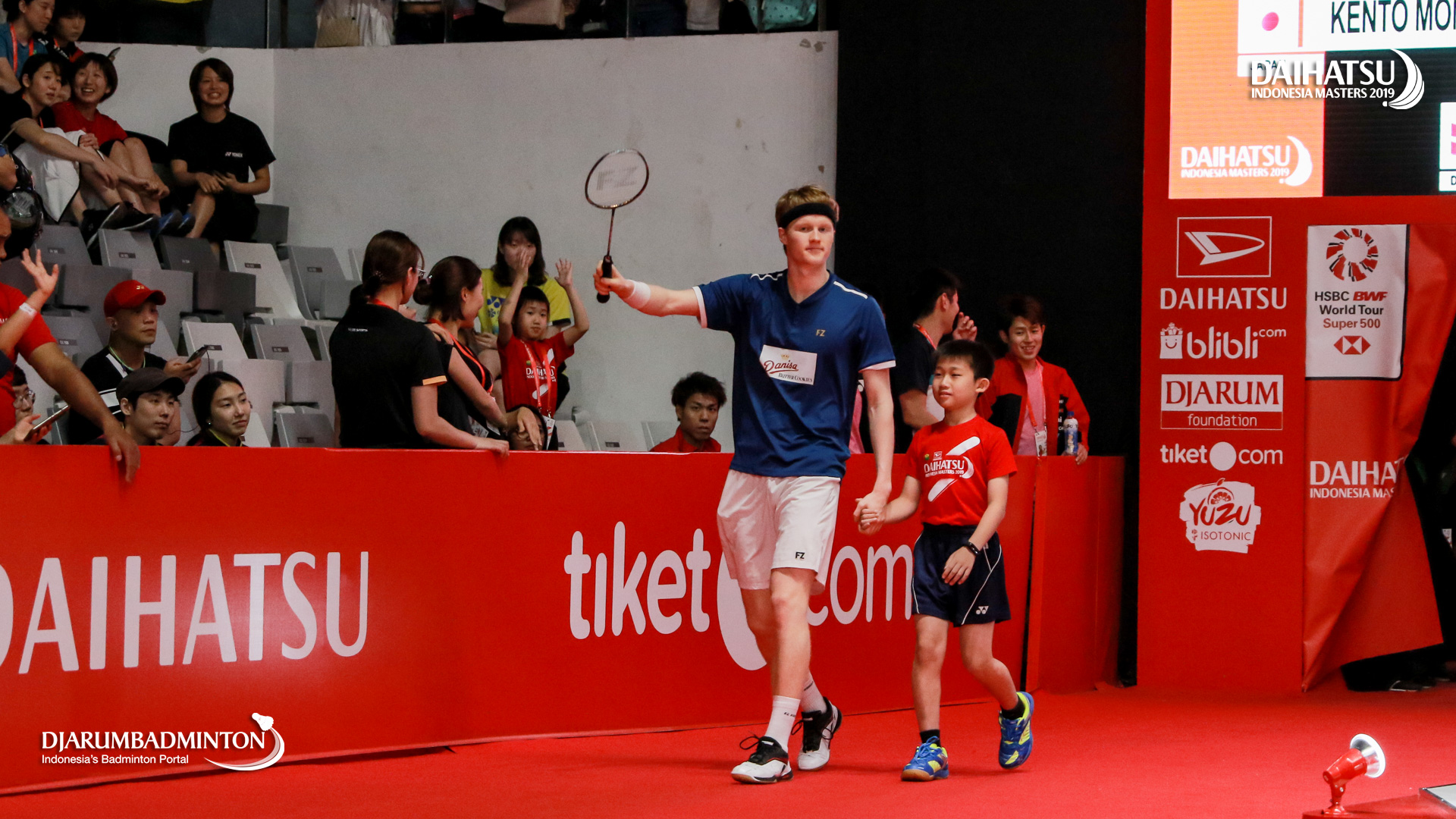 Anders Antonsen (Denmark) saat memasuki arena pertandingan