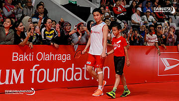 Kento Momota (Japan) saat memasuki arena pertandingan