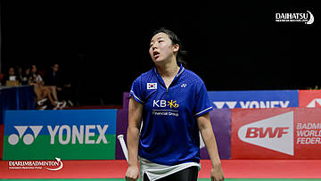 Kim So Yeong/Kong Hee Yong (Korea) bersiap mengembalikan serangan