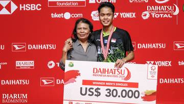 Anthony Sinisuka GINTING (Indonesia) Juara Tunggal Putra Daihatsu Indonesia Masters 2020 berfoto bersama Ibunya