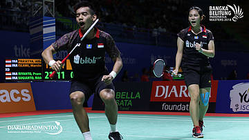 Rinov Rivaldy/Phita Haningtyas Mentari (INA) bersiap menyambut pengembalian