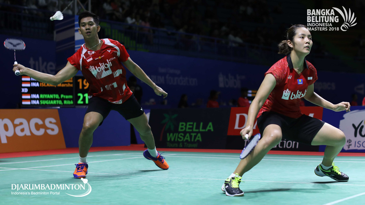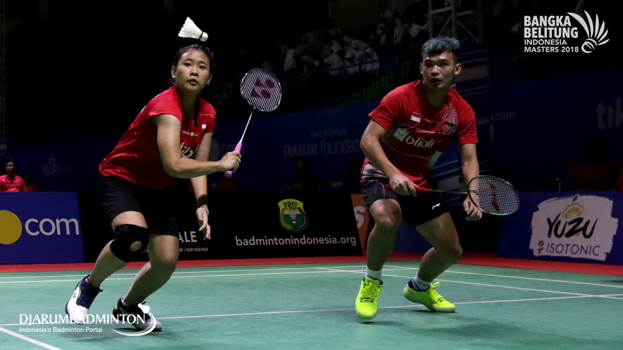 Rinov Rivaldy/Phita Haningtyas Mentari (INA) mengembalikan shuttlecock