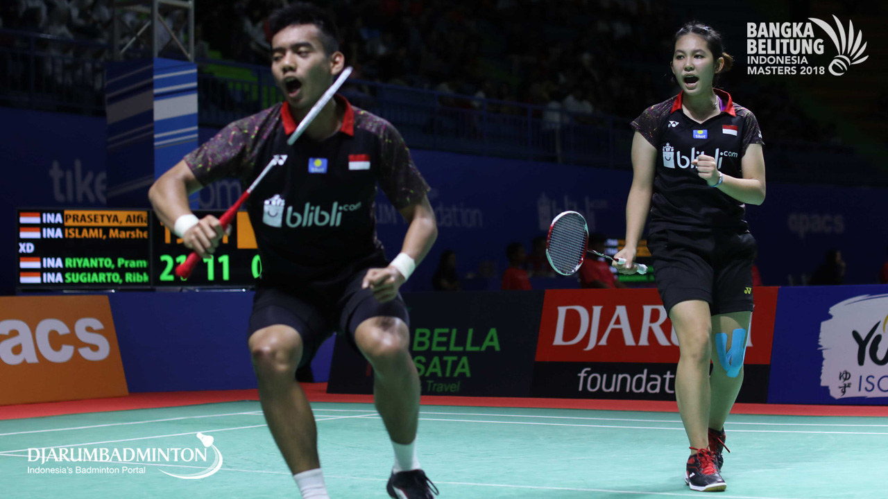 Selebrasi Pramudya Kusumawardana Riyanto/Ribka Sugiarto (INA)
