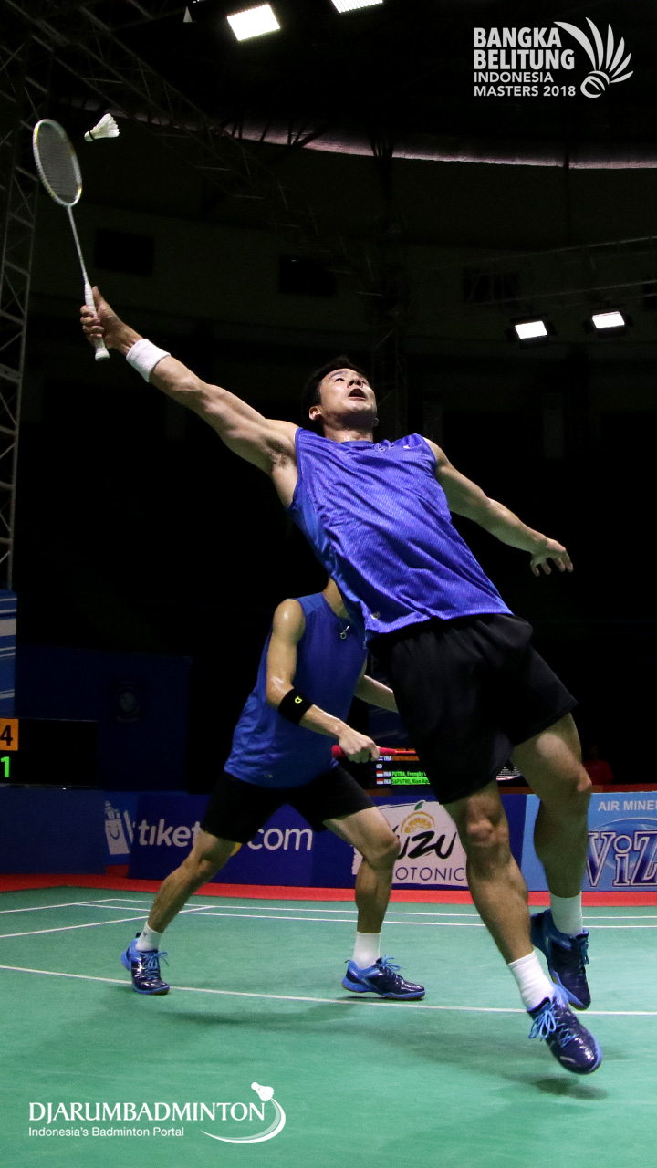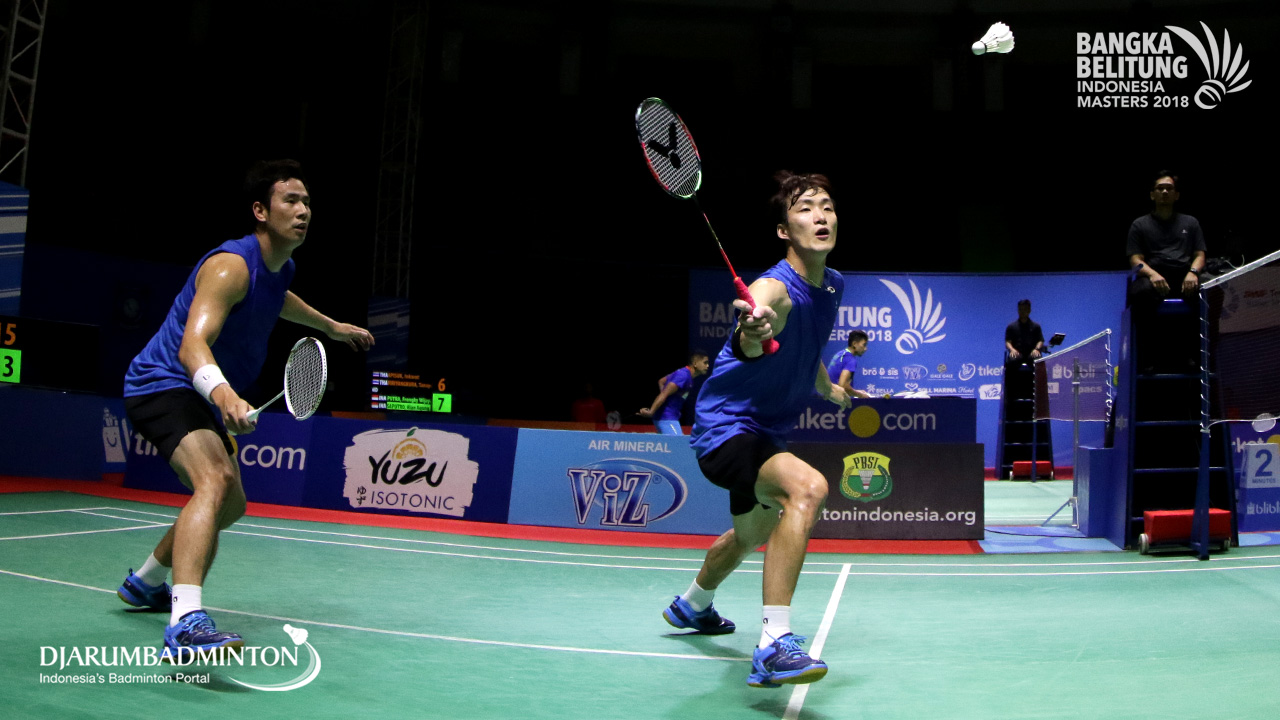 Ko Sung Hyun/Shin Baek Cheol (KOR) menghadang pengembalian