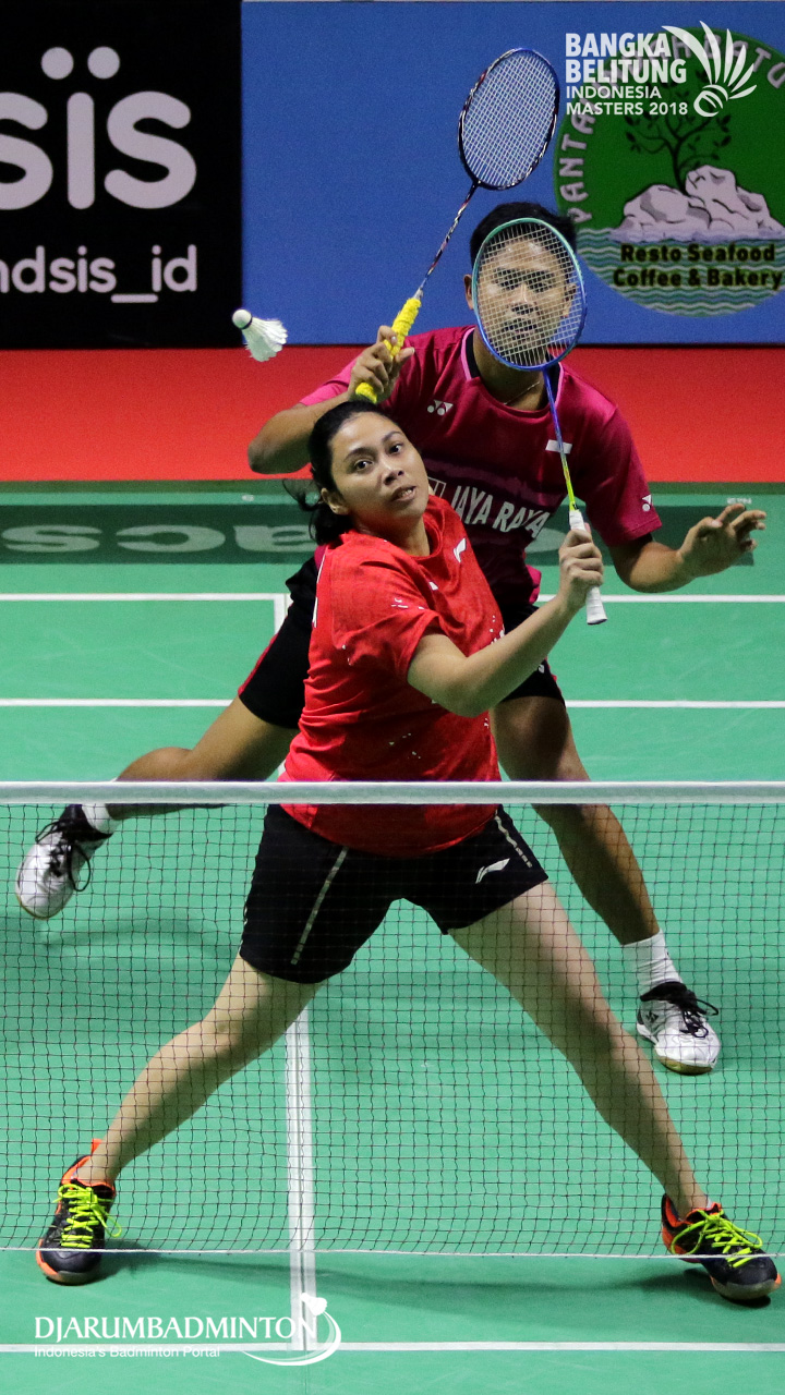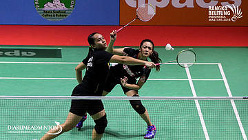 Maretha Dea Giovani/Masita Mahmudin (INA) mengembalikan shuttlecock