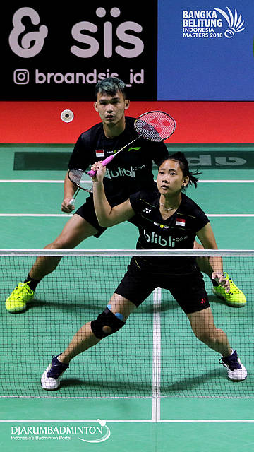 Rinov Rivaldy/Phita Haningtyas Mentari (INA) bersiap menyambut pengembalian
