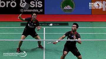 Riky Widianto/Tiara Rosalia Nuraidah (INA) bersiap menghadang serangan