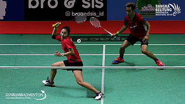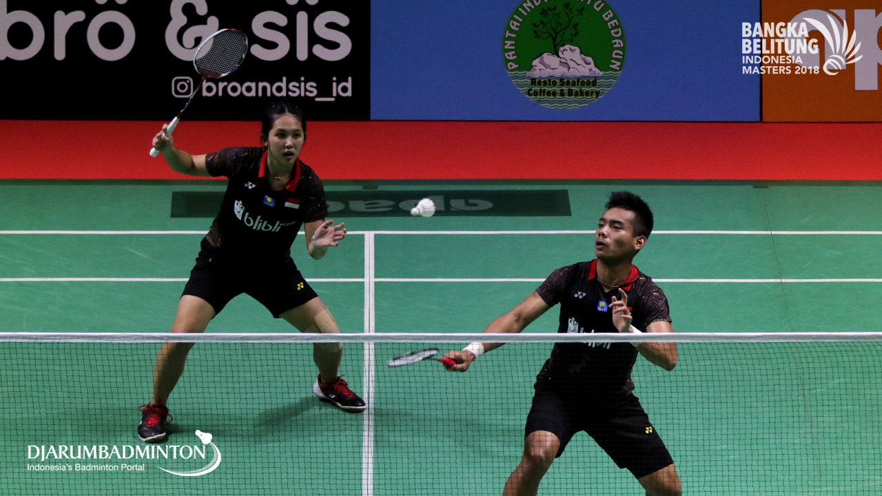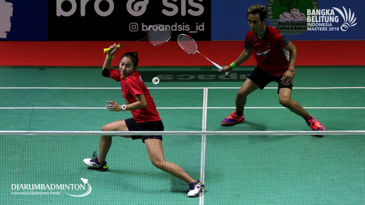 Agripinna Prima Rahmanto Putera/Devi Tika Permatasari (INA) menghadang serangan