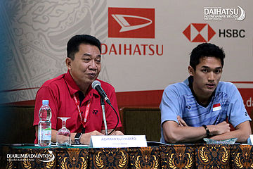 Ketua Pelaksana Daihatsu Indonesia Masters 2018, Ahmad Budiarto (Kiri) Saat Press Conference