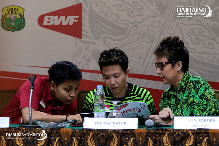 Liliyana Natsir (Indonesia) Tampak Serius Mendengarkan Pertanyaan Dari Wartawan Saat Press Conference Jelang Daihatsu Indonesia Masters 2018
