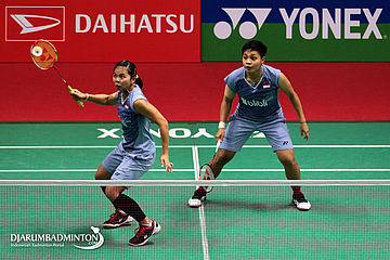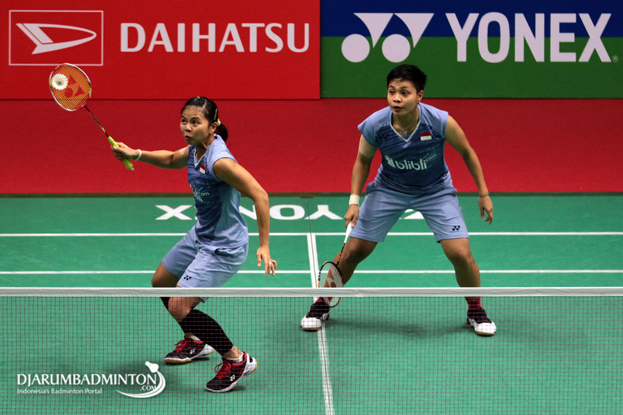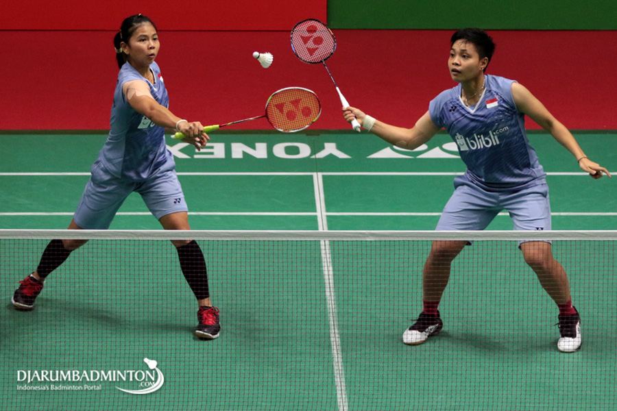 Apriyani Rahayu/Greysia Polii (Indonesia) Menghadang Serangan