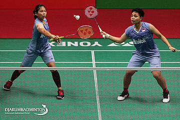Apriyani Rahayu/Greysia Polii (Indonesia) Menghadang Pengembalian