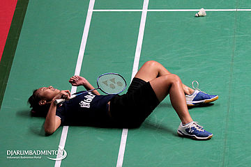 Vania Arianti Sukoco (Indonesia) Terjatuh Saat Berusaha Menghadang Serangan